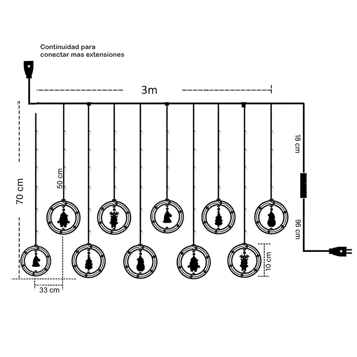 - Medidas: 3 m de largo con 10 tiras luminosas